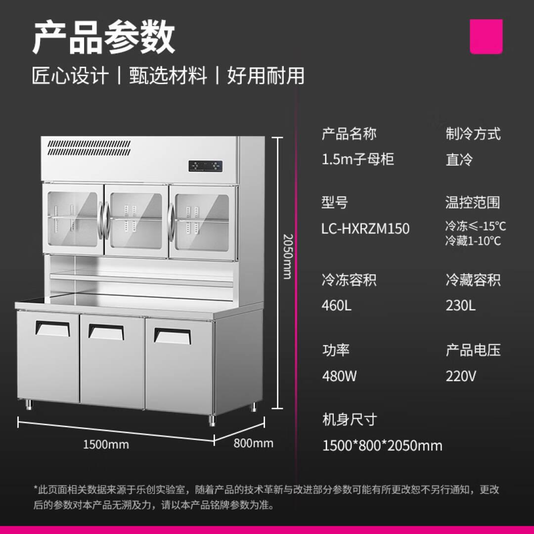 乐创lecon 商用子母柜工作台冷藏冰柜一体冰柜奶茶店设备全套卧式冰柜厨房平冷操作台冰箱 LC-HXRZM150