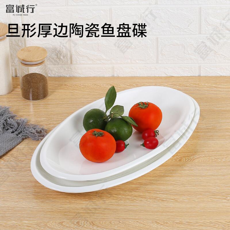 富诚行 旦形厚边陶瓷鱼盘碟2个装 16英寸 单位:组