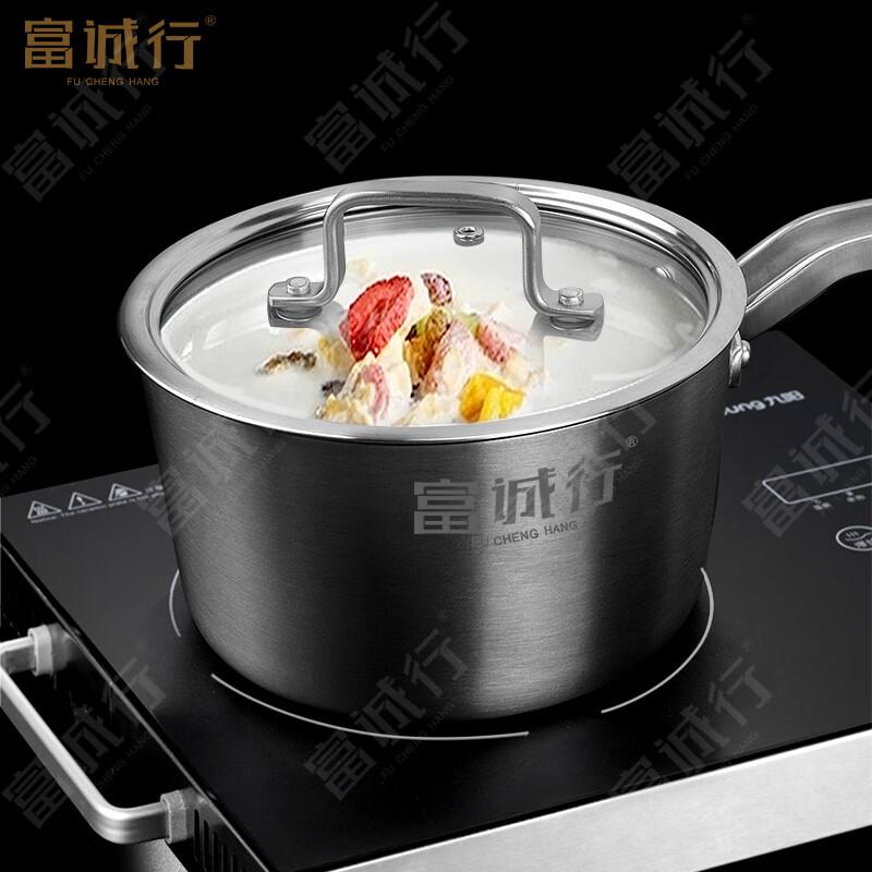 富诚行 不锈钢复合底单柄汁锅厚底奶锅酱汁料理汤锅电磁炉用 配玻璃盖 16cm 单位:个