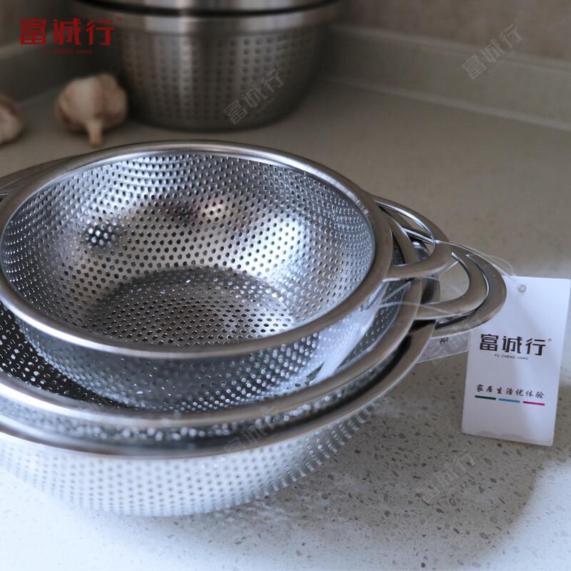 富诚行 不锈钢沥水盆 漏盆 米筛 水果篮 厨房淘米 密孔多用篮 加厚双耳 28.5cm