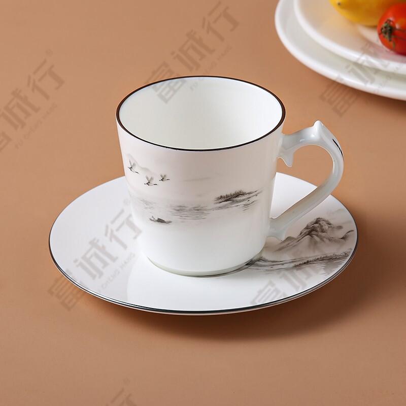 富诚行 陶瓷碗盘套装 餐具套装 商用家用微波适用 秀丽山河系列 奈杯碟 单位:个