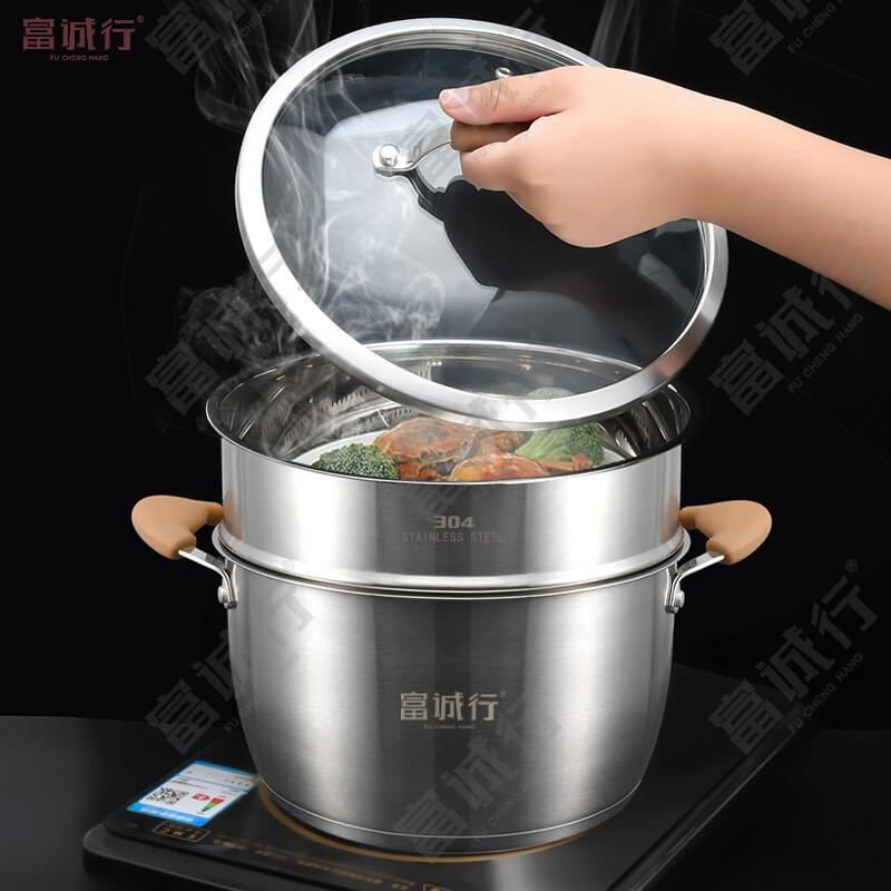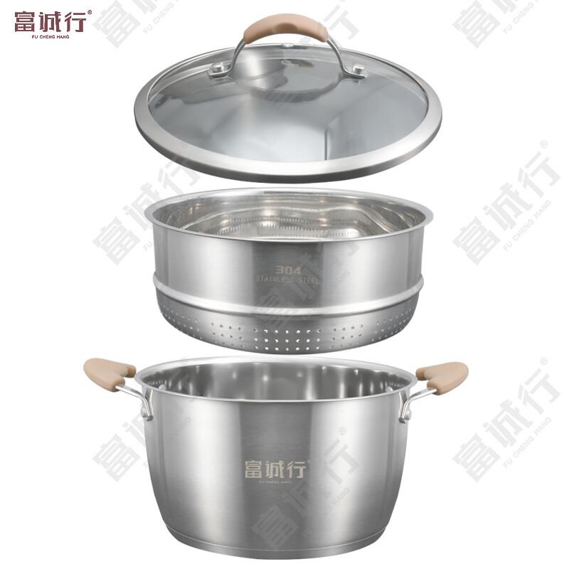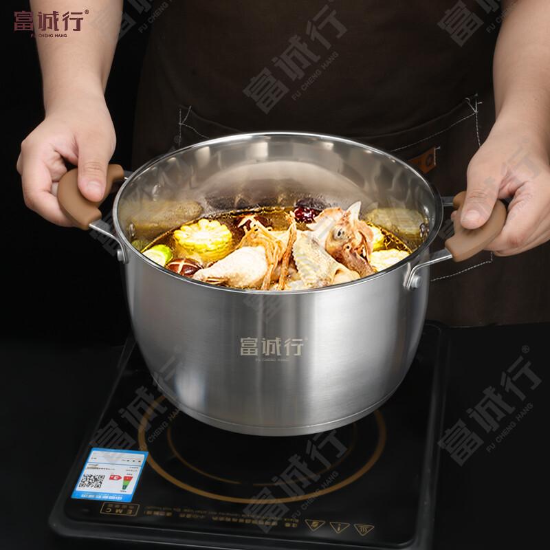 富诚行 304不锈钢复底汤锅 燃气明火电磁炉通用 24cm 汤锅(单个) 单位:个