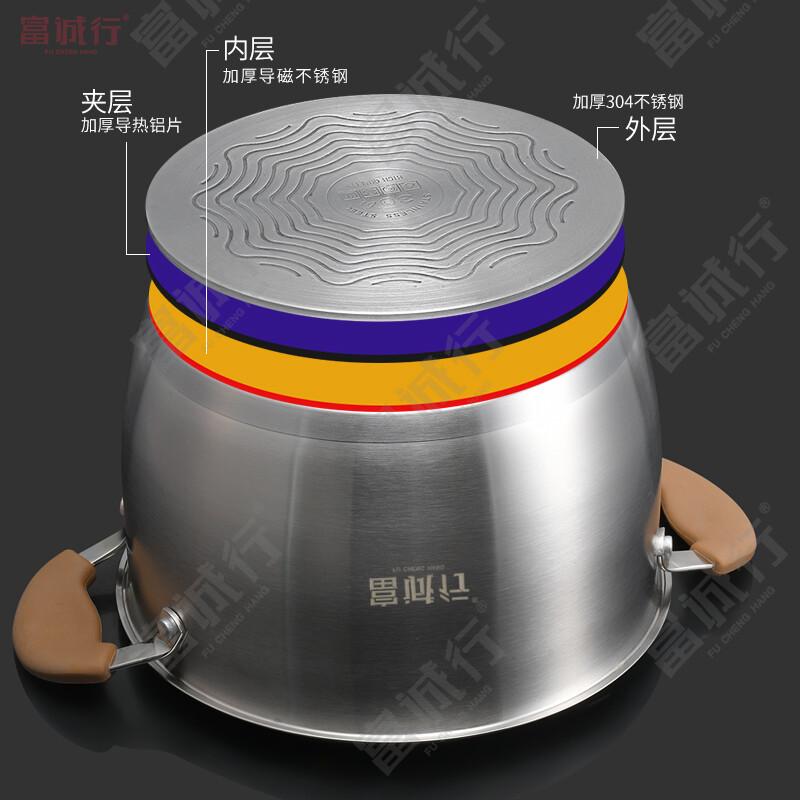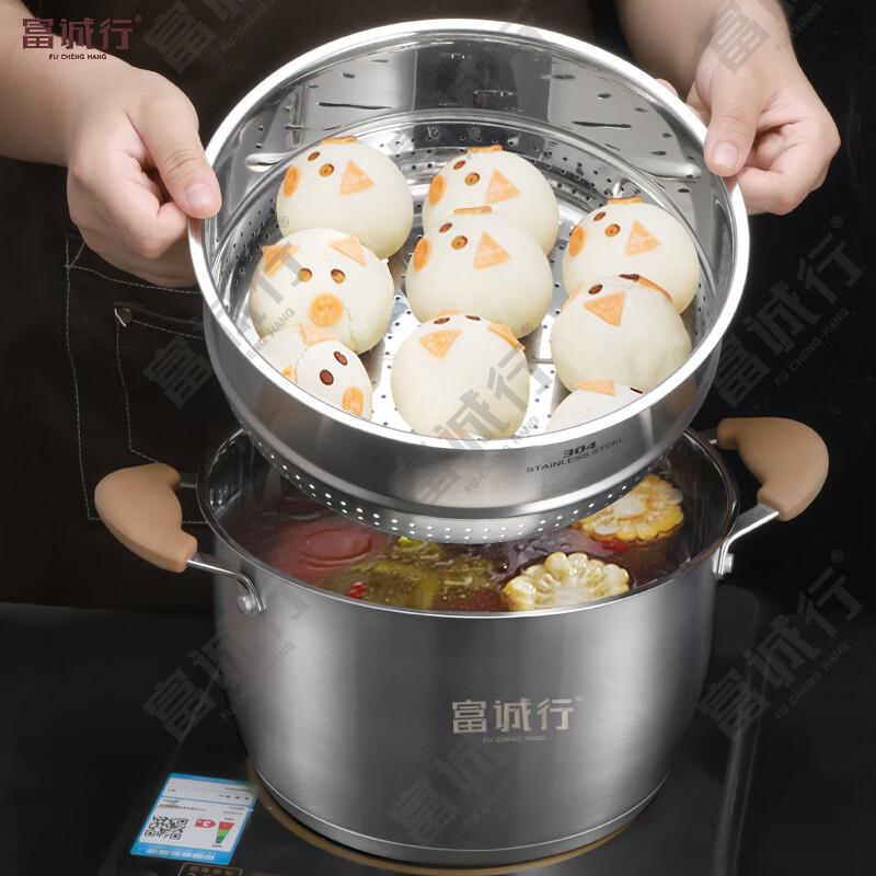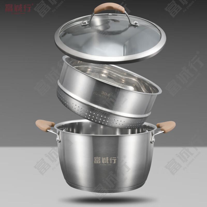 富诚行 304不锈钢复底汤锅 燃气明火电磁炉通用 24cm 汤锅(带蒸格) 单位:个
