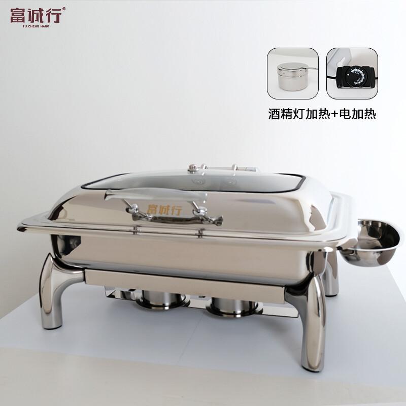 富诚行 商用自助餐炉布菲炉保温炉 玻璃可视机械缓冲 双加热 A2款 长方形 9L 双盘