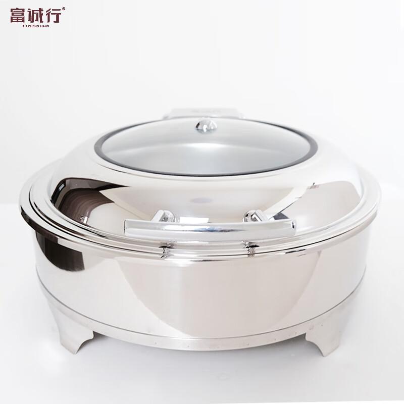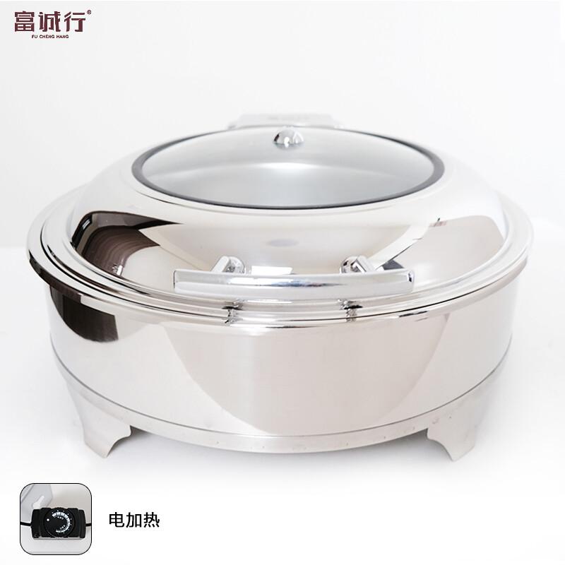 富诚行 商用自助餐炉布菲炉保温炉 玻璃可视可调温 A5款 高脚 电加热+酒精灯加热 6L 不锈钢双格