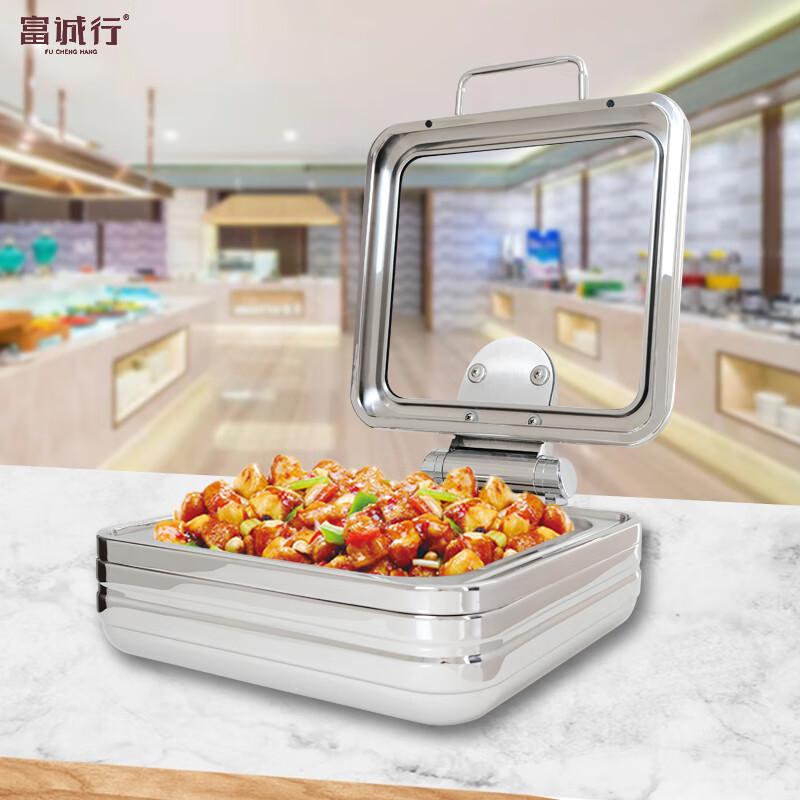 富诚行 商用自助餐炉布菲炉保温炉早餐炉 玻璃可视液压款 双加热 A3款 正方形 6L