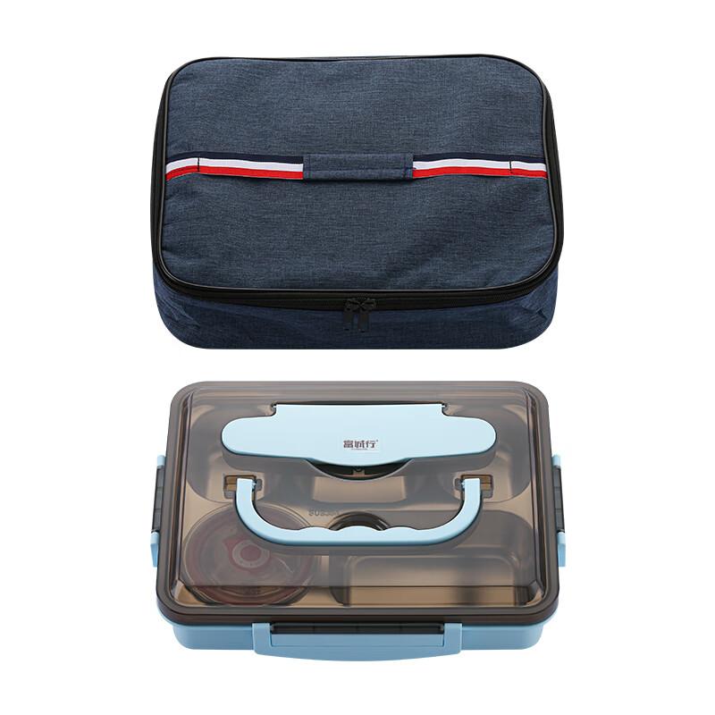 富诚行 304不锈钢保温饭盒餐盒 北欧蓝 四格 单位:套