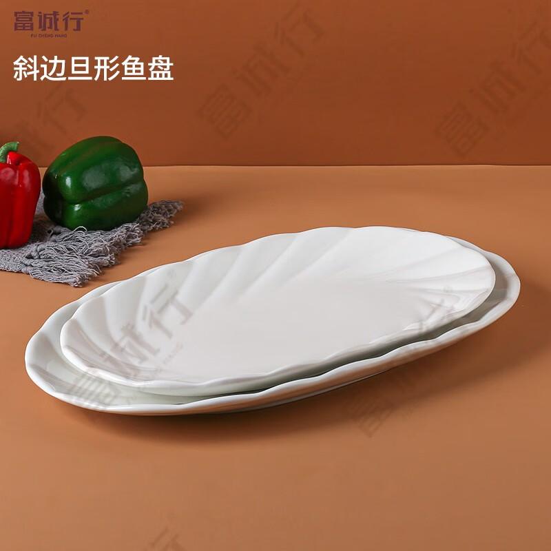 富诚行 斜边旦形鱼盘陶瓷碟子P0174 14英寸 2个装/组 单位:组