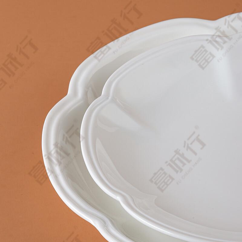 富诚行 陶瓷浅盘双边梅花玉兰边浅式盘纯白汤盘 双边梅花盘【2个装/组】 26cm 12英寸