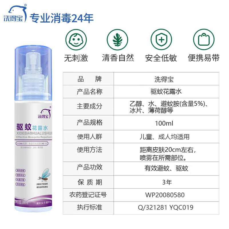 > 洗得宝 蚊不叮驱蚊花露水喷雾100ml/瓶 长效驱蚊 清新(计价单位:瓶)