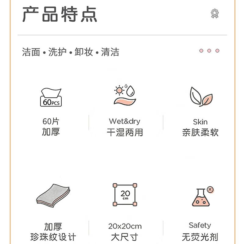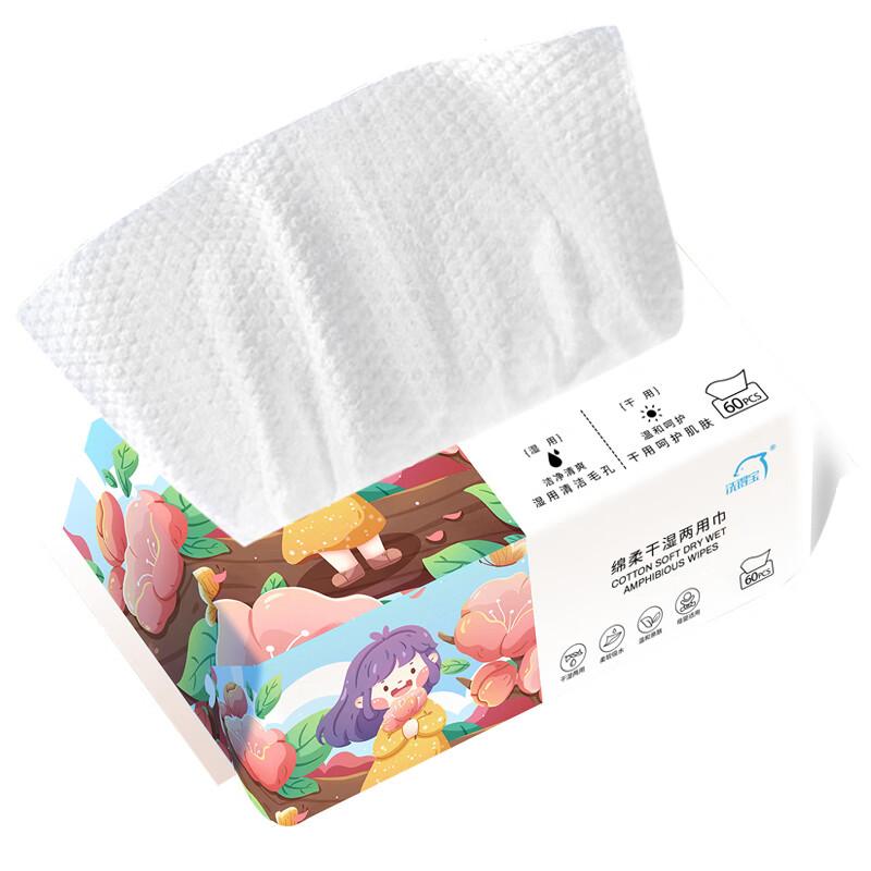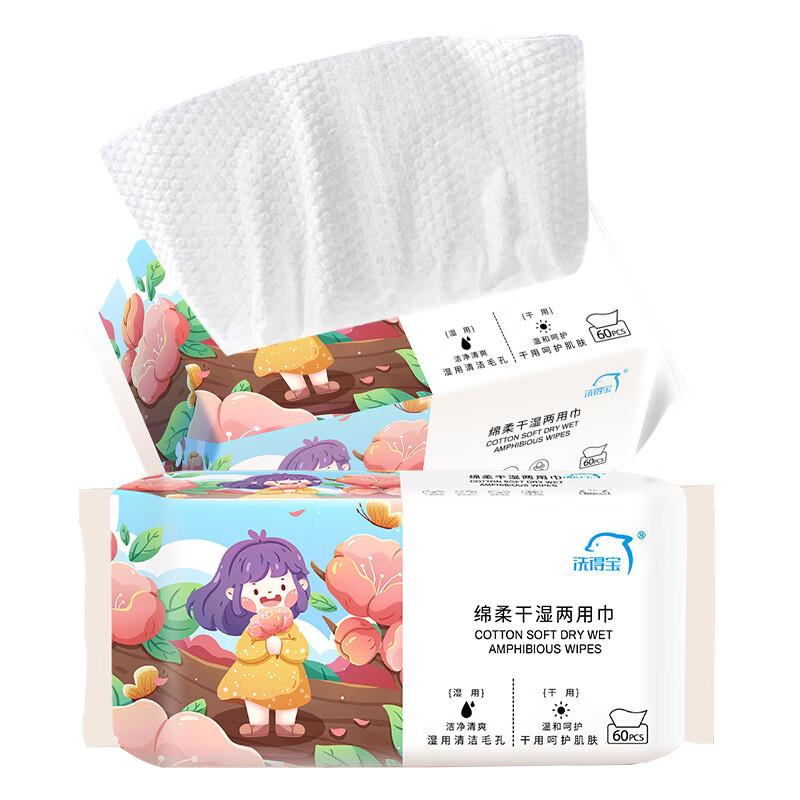 > 洗得宝 绵柔干湿两用巾 一次性加厚加大洗脸巾 抽取式卸妆洁面擦脸巾60片