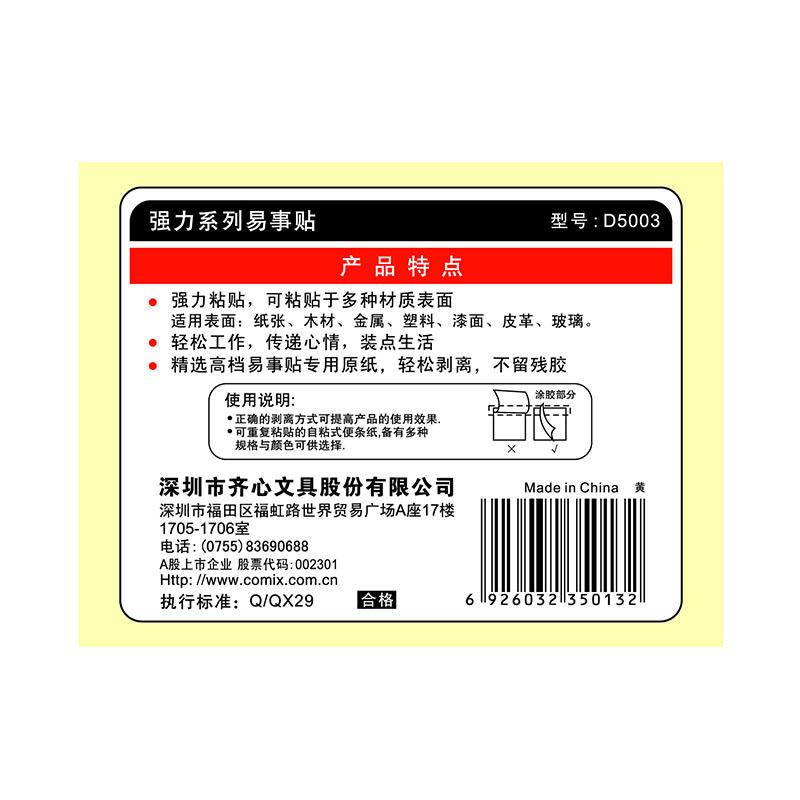 > 齐心 D5003 系列易事贴 76*101mm 100张/本 黄 12个装