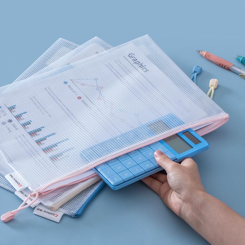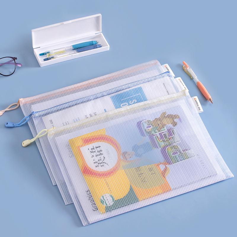 > 齐心 A3362 莫兰迪网格拉链袋 A4 配色 1个装