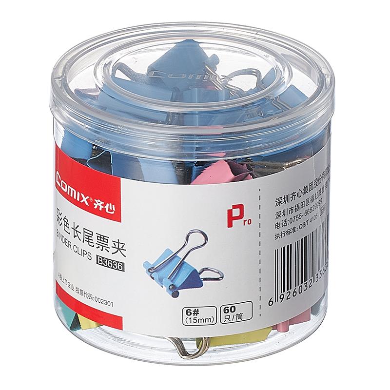 > 齐心 B3636 长尾票夹 15mm 60只/筒 配色 单位:筒