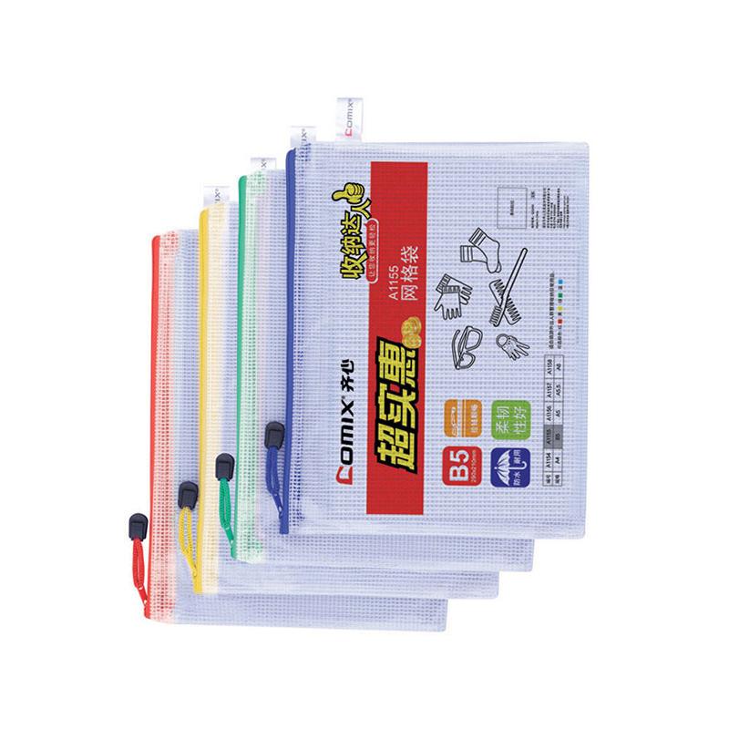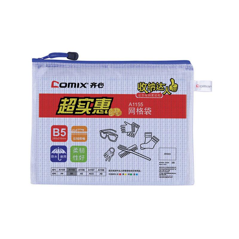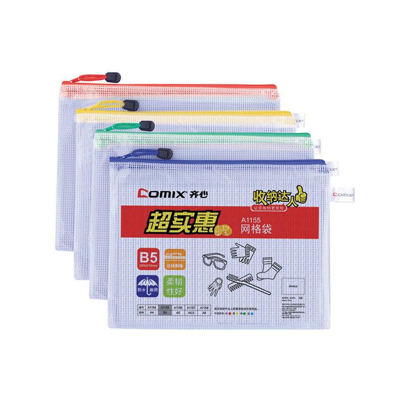 > 齐心 A1155 B5 网格拉链文件袋 配 10个装