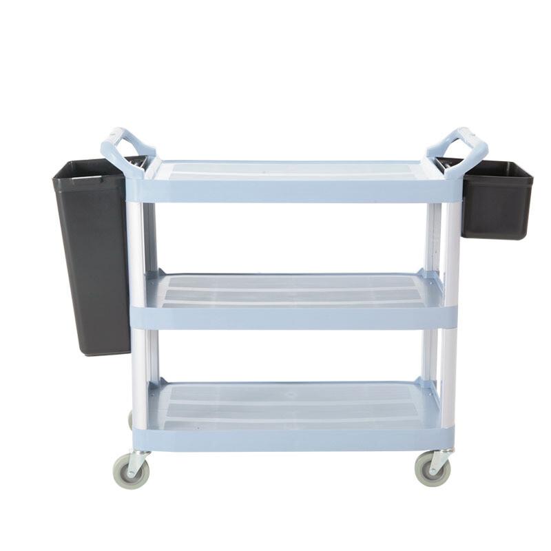 富诚行 拆装式多用途三层手推车灰色带挂桶 小号三层餐车带挂桶 单位:辆