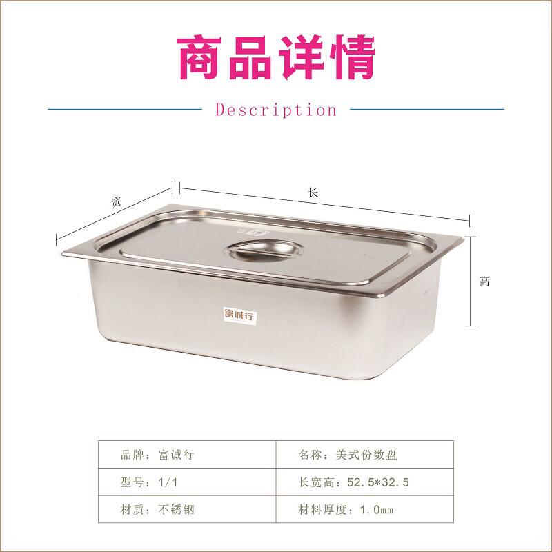 富诚行 不锈钢美式份数盘带盖套装 1/1份数盘带盖 高6.5cm 单位:个