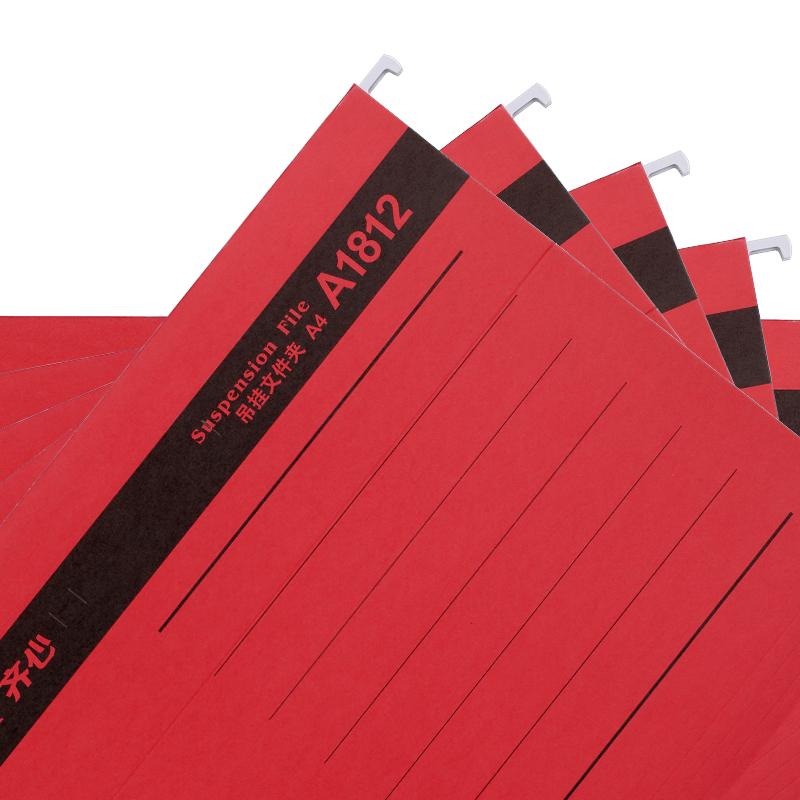 齐心 A1812 纸质易查找吊挂夹 A4 红色 25个装