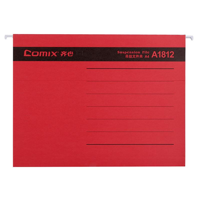> 齐心 A1812 纸质易查找吊挂夹 A4 红色 25个装