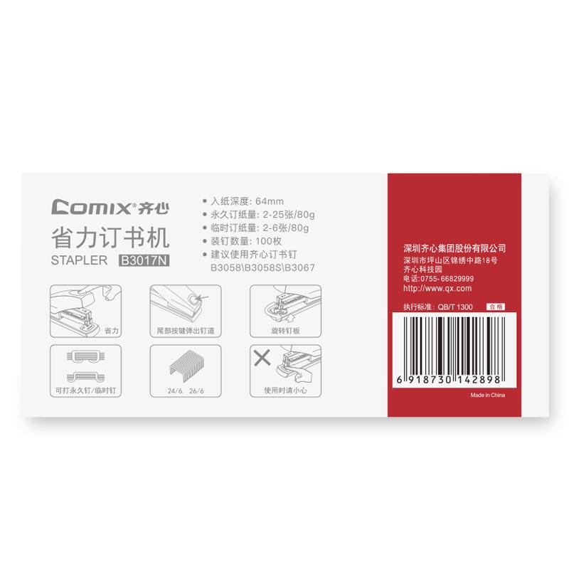 齐心 B3017N 省力订书机 (133*35*80mm) 红 单位:个