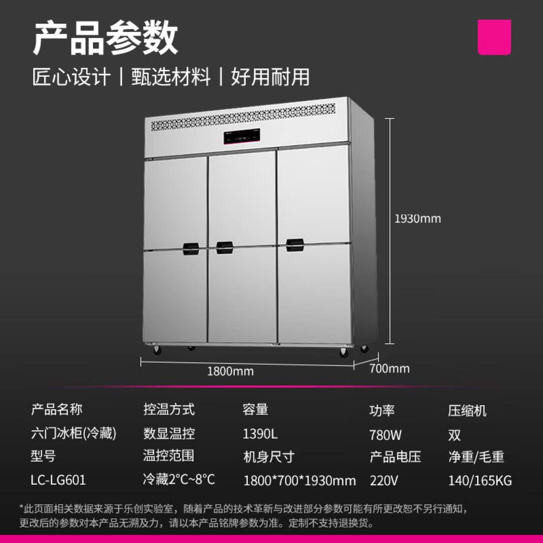 乐创(lecon)商用六门厨房冰箱冷藏立式冷冻冰柜保鲜柜大容量不锈钢双温 六门冰柜 全冷藏直冷款LC-LG601