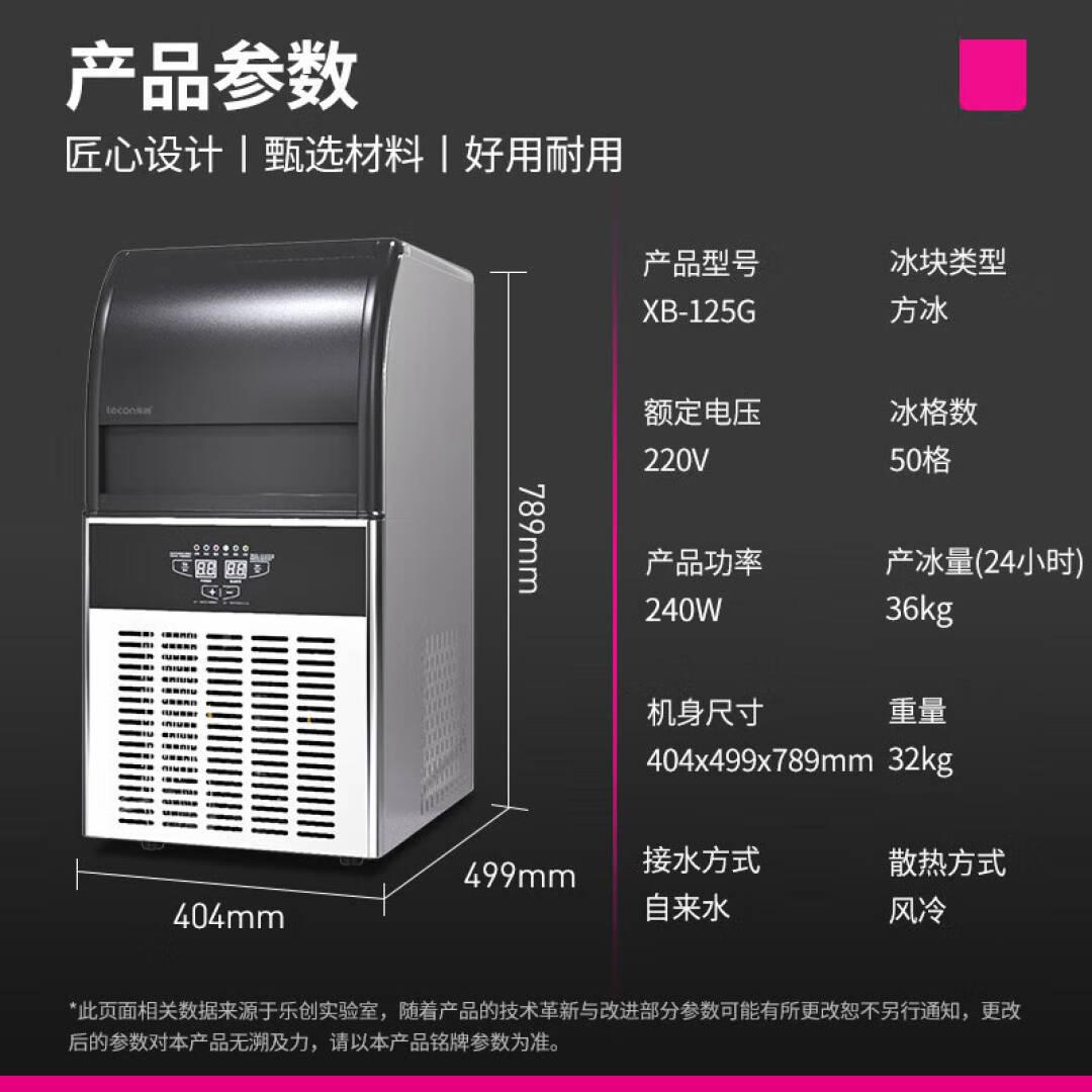 乐创(lecon)制冰机商用 奶茶店全自动方冰大型制冰机吧台ktv商用制冰机 50冰格 日产量36KG 自来水 XB-125G