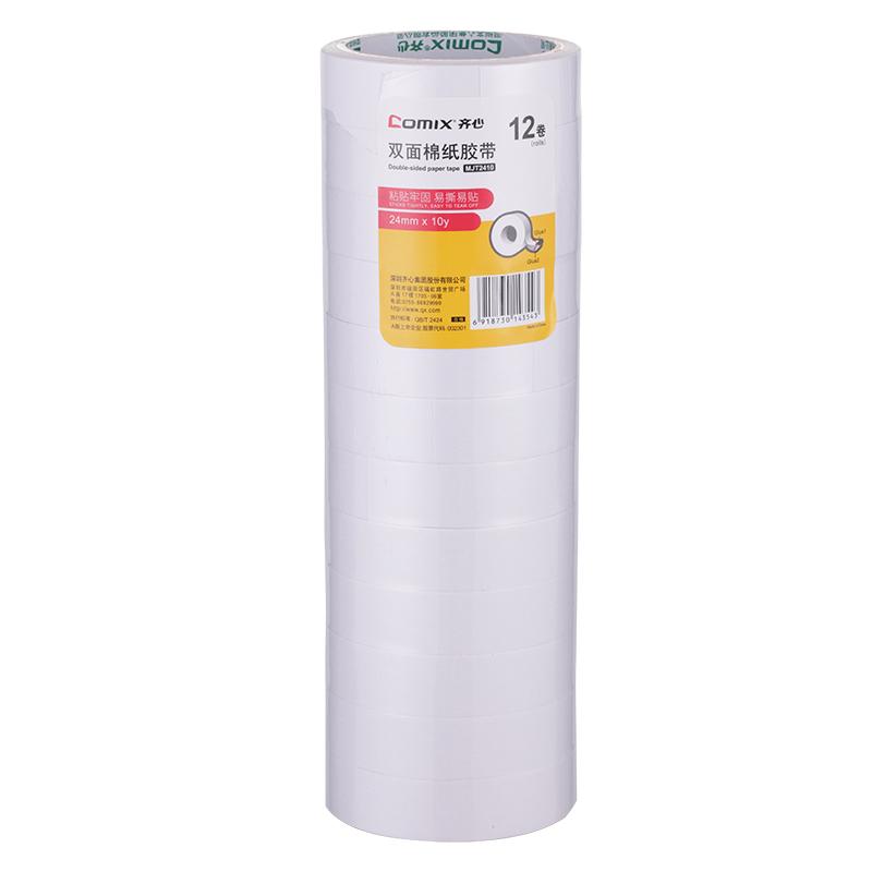 > 齐心 MJT2410 双面棉纸胶带 24mm*10y 12卷/袋 白 单位:袋