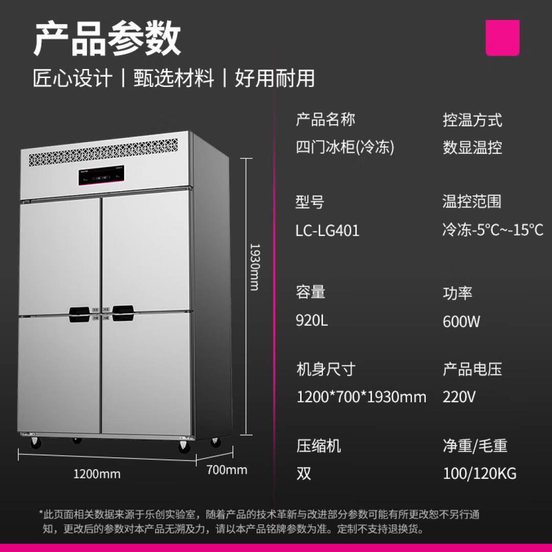 乐创(lecon)商用四门厨房立式冰箱冷冻冰柜保鲜柜大容量不锈钢四门全冷冻直冷款LC-LG401