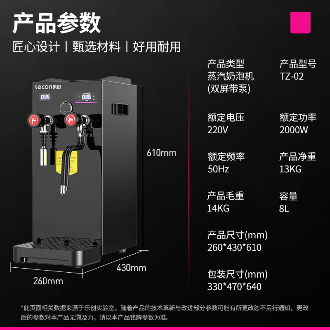 乐创(lecon)全自动蒸汽奶泡机咖啡打奶泡器萃茶机开水器商用奶茶店设备 黑色款LC-SK-8A【一价无忧】 单位:台