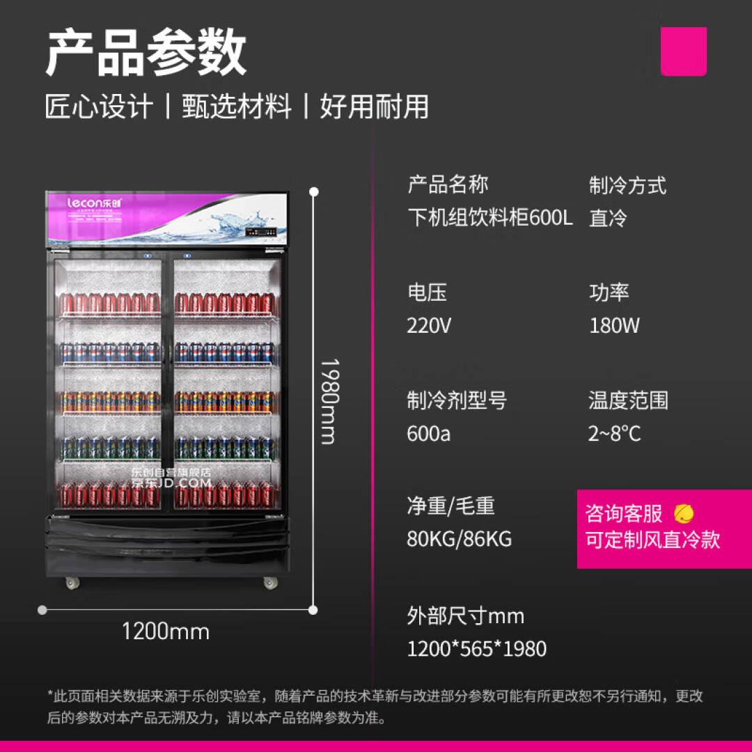 乐创(lecon)展示柜冷藏饮料柜立式超市便利店冷饮柜双门大容量下机组直冷LC-ZSG02