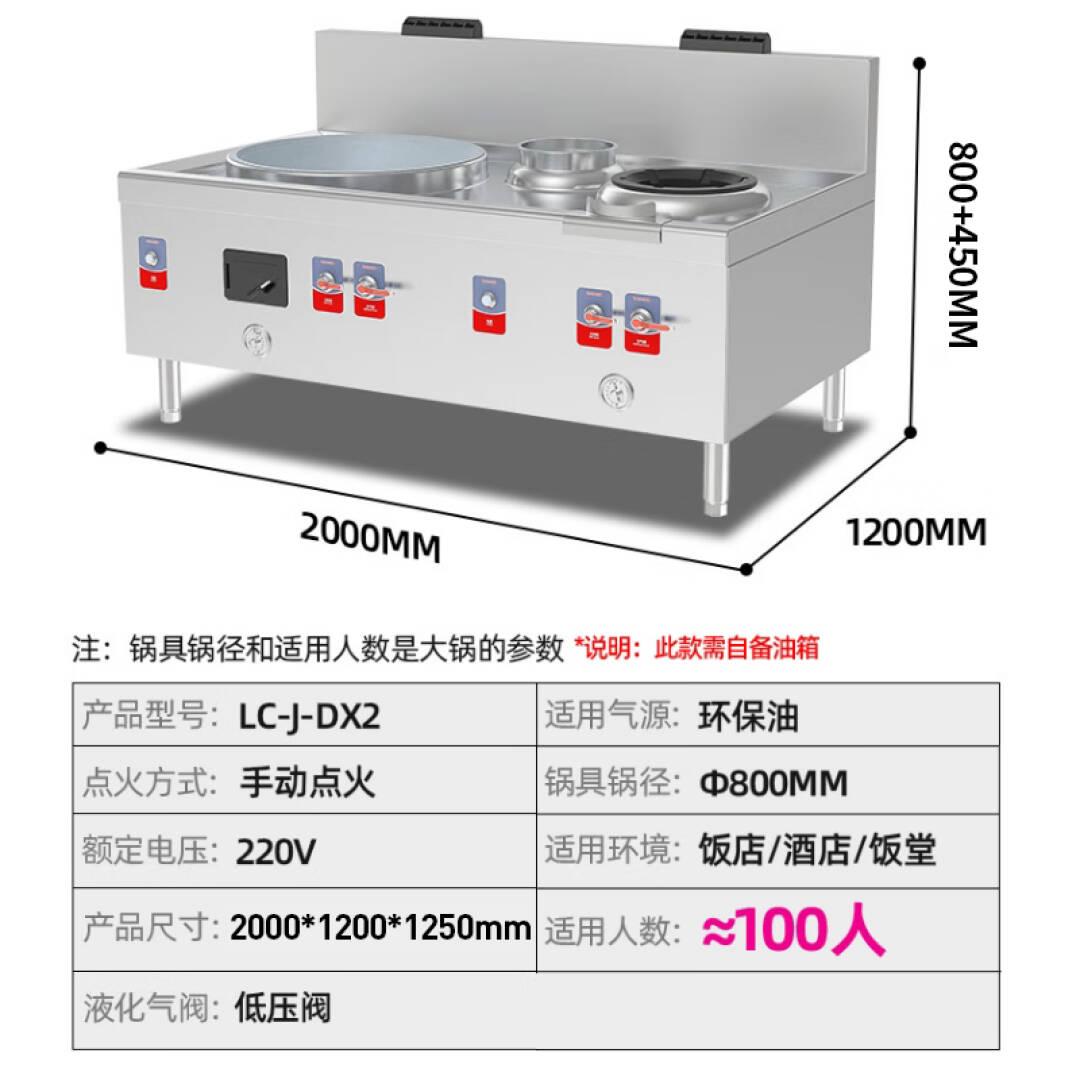 乐创(Lecon)商用燃气组合灶(大锅+小炒) 大锅锅径800 环保油可选酒店厨房企业炒灶 LC-J-DX2