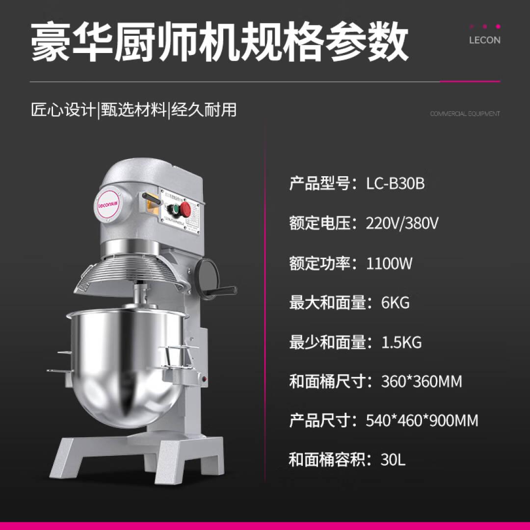 乐创(lecon)搅拌机商用打蛋器多功能厨师机和面机蛋糕面包打发打奶油30L(带罩) LC-B30B 单位:台