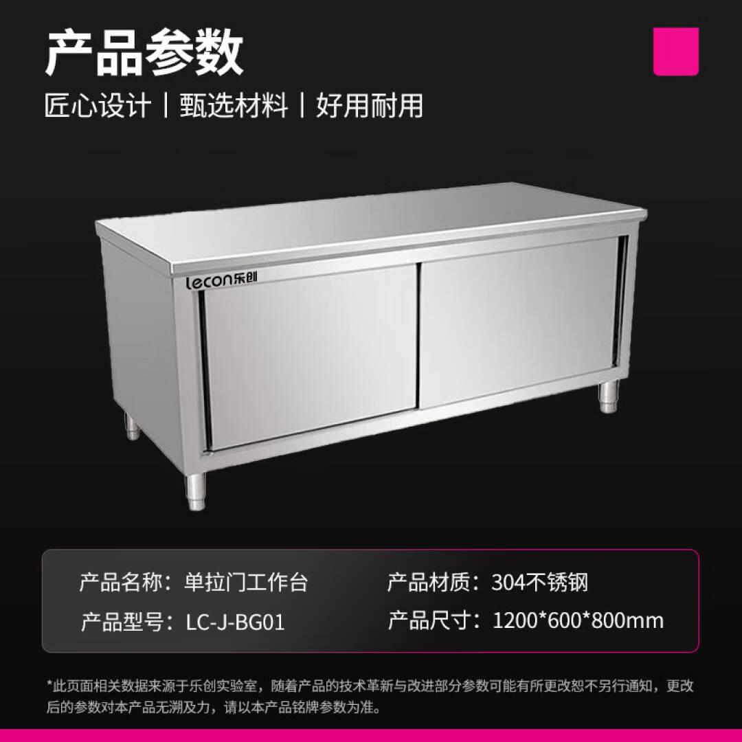 乐创 lecon 商用双拉门工作台 304型1.2*0.6米厨房操作台面不锈钢储物柜 LC-J-BG01 单位:台