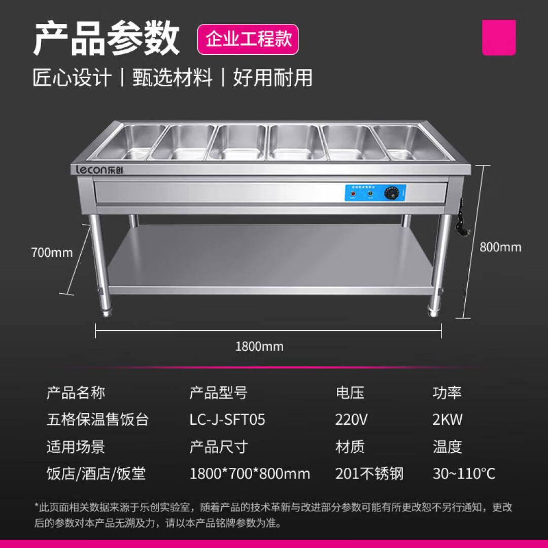 乐创(lecon)商用平板保温售饭台 六格不锈钢恒温车 LC-J-SFT06 单位:台