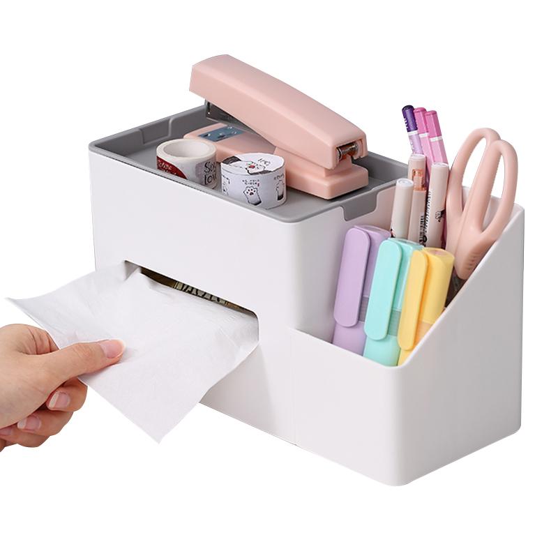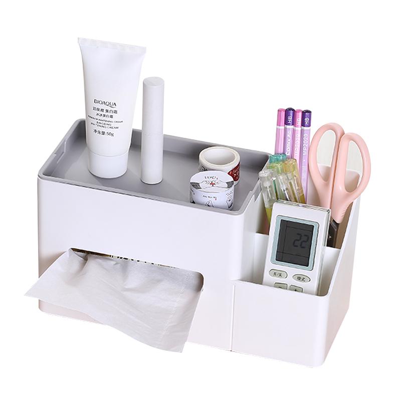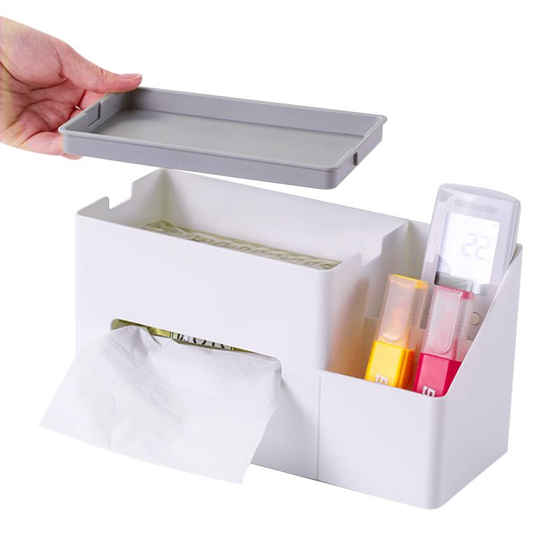 > 齐心 B2277 纸巾抽多功能收纳盒 244*102*132mm 象牙白 单位:个