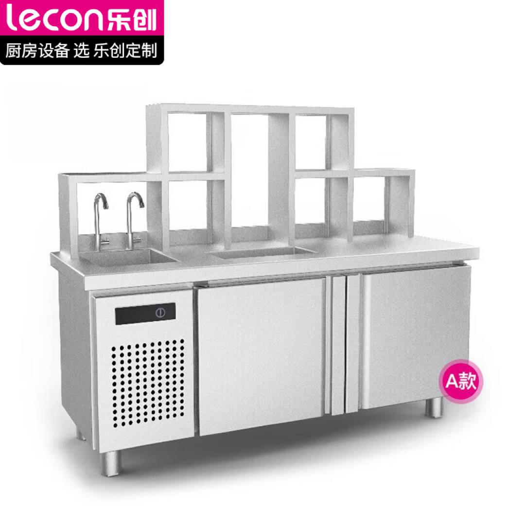 乐创(lecon)奶茶店设备全套咖啡店贡茶台厨房冷藏冷冻工作台冰柜水吧台奶茶店操作台冷藏LC-SBT1.8A