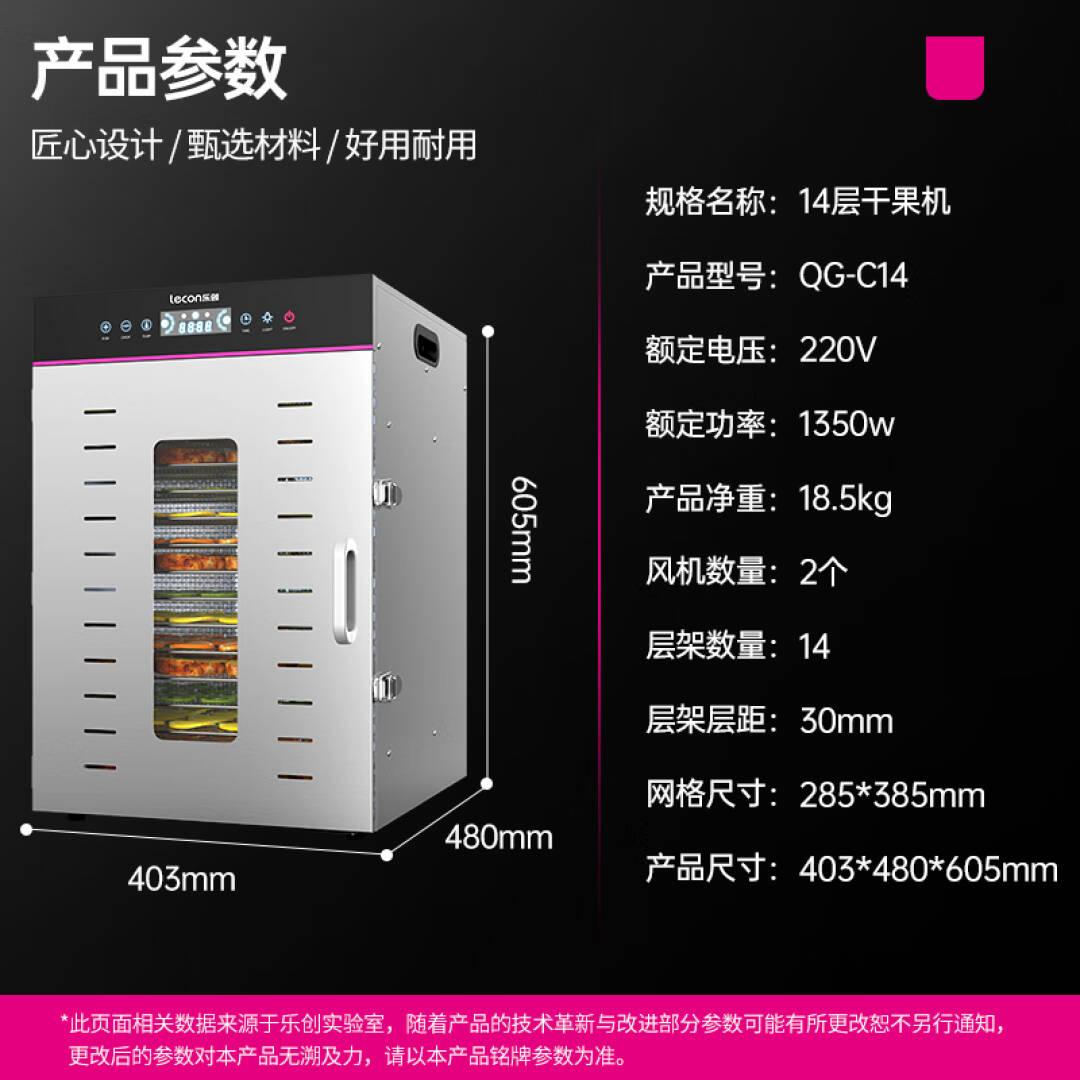 乐创(lecon)干果机商用食品药材水果烘干机不锈钢蔬菜风干机14层干果机 烘干机食品干果机QG-C14