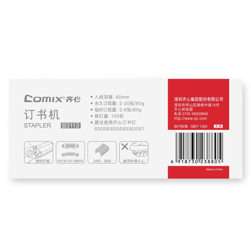 > 齐心 B3113 订书机 20页 冰川蓝 单位:个