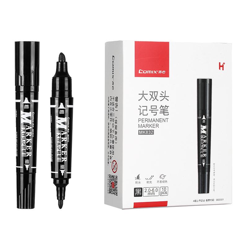> 齐心 MK832 快干双头记号笔大头笔 黑 10个装