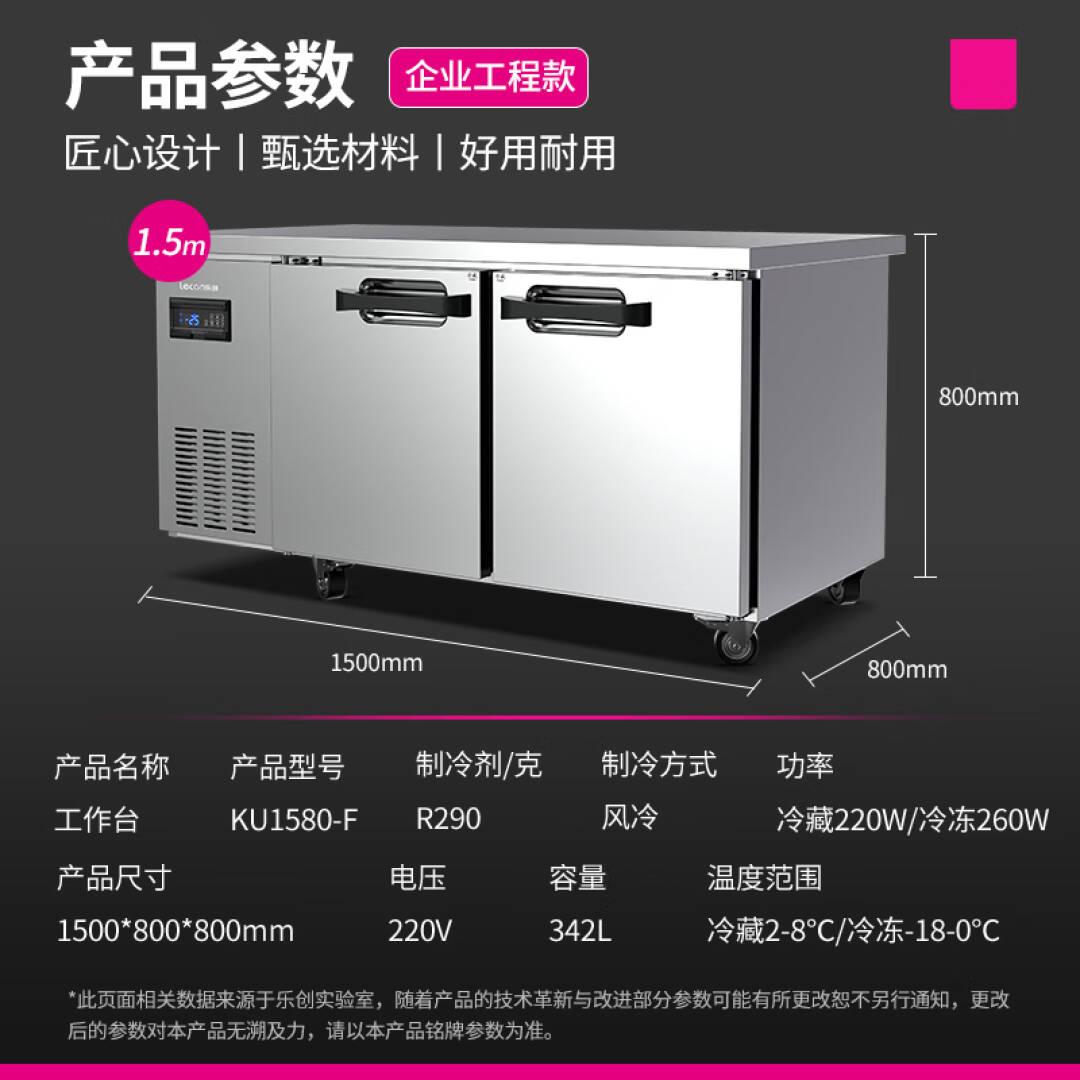 乐创(lecon)冷藏工作台保鲜操作台冰柜 卧式冰柜厨房高端风冷冰箱1.5*0.8米全冷冻 KU1580-F