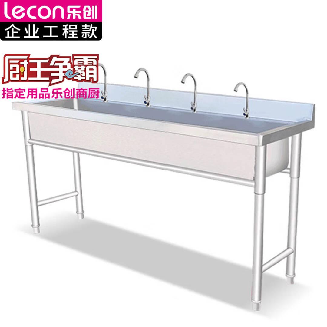 乐创(lecon)商用联排水池 不锈钢单槽 2000*600*800mm 带4个单冷水龙头 LC-J-LPC2064【一价无忧】 单位:台