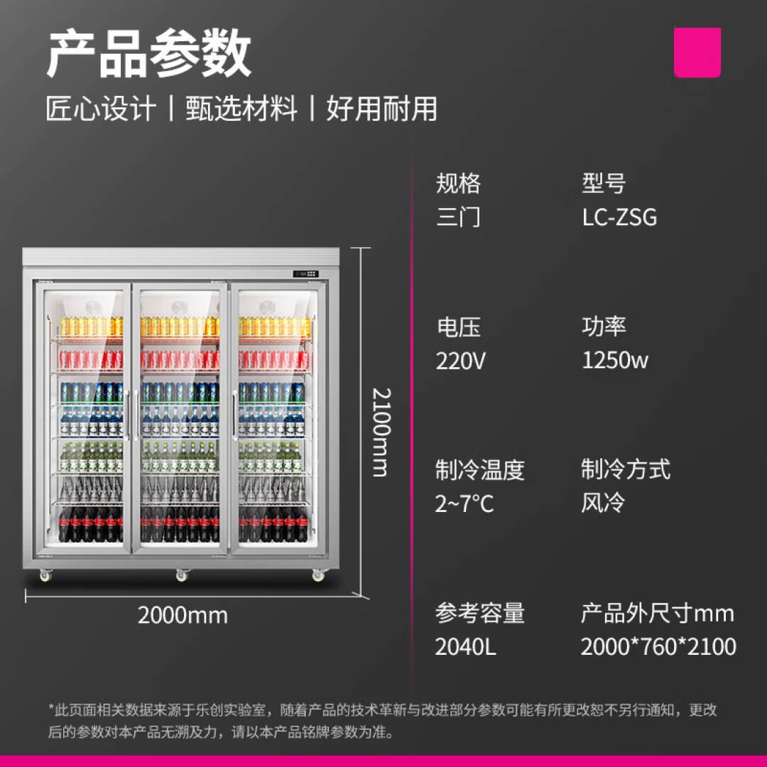 乐创(lecon)饮料柜展示柜冷藏保鲜柜商用啤酒柜超市便利店立式冰箱冰柜冷柜分体机风冷三门平头款LC-ZSG