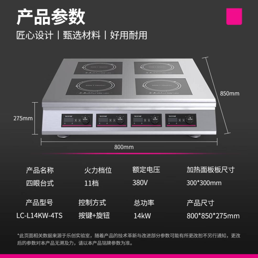 乐创 lecon 商用电磁炉3500w四头平面爆炒多眼大功率电磁灶LC-L14KW-4TS 单位:台