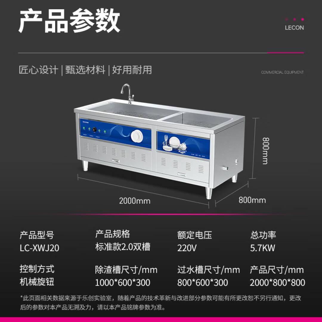 乐创 超声波洗碗机商用全自动大型家用洗碟机酒店用2.0米超声波洗碗机 双槽一过水一除渣 LC-XWJ20