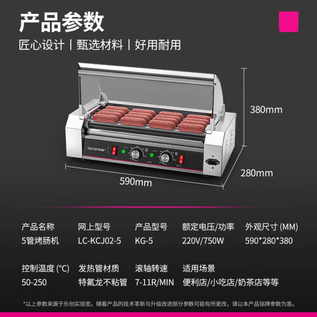 乐创(lecon)商用烤肠机热狗机商用小吃店全自动台式烤火腿肠机 5管(2023年升级高端不沾款)LC-KCJ02-5