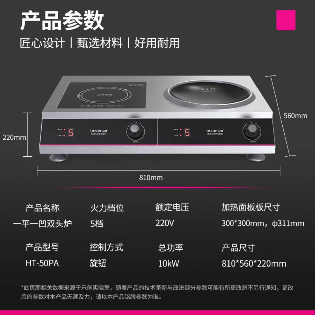 乐创 lecon 商用电磁炉5000w双头平凹面爆炒多眼大功率电磁灶HT-50PA 单位:台