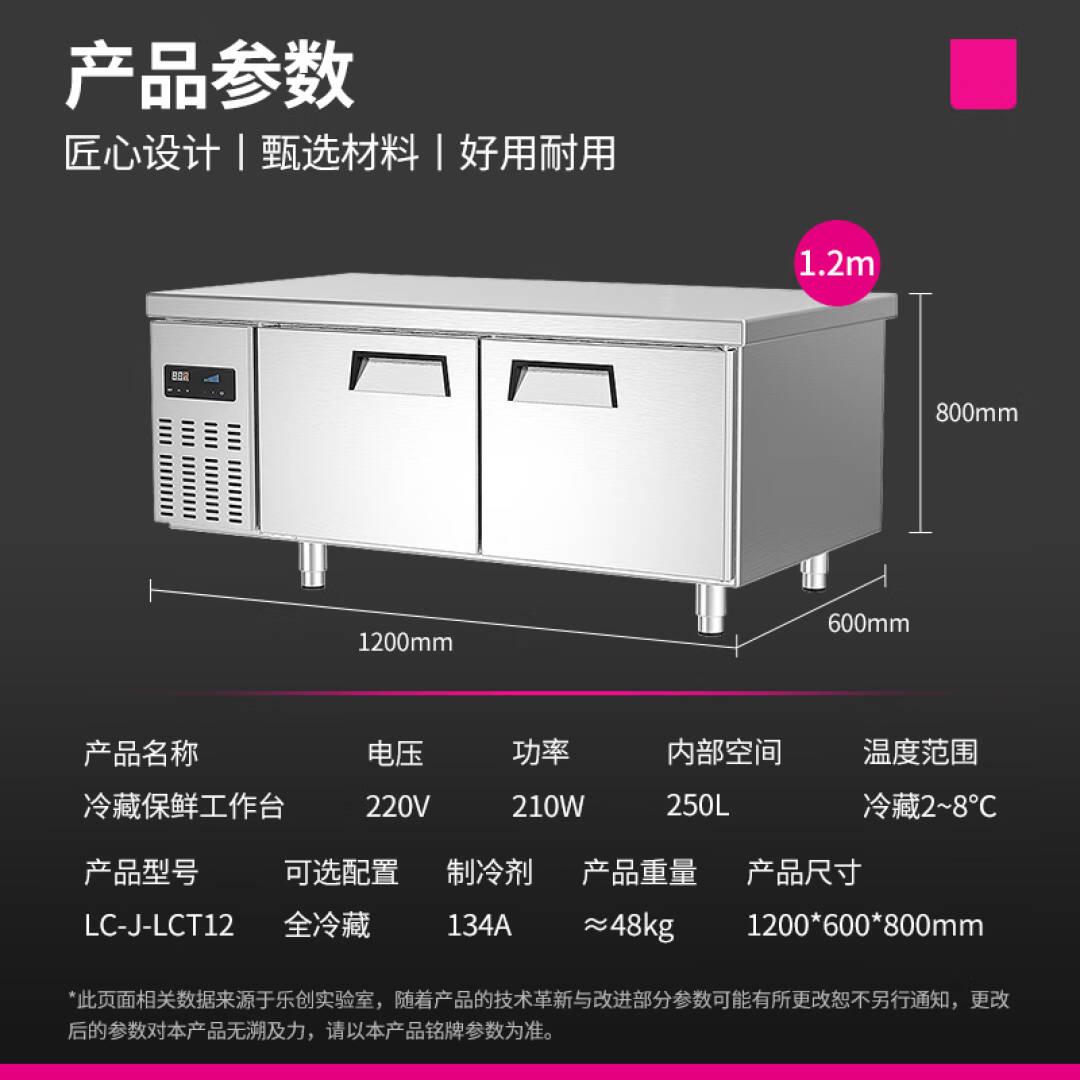 乐创 (lecon)商用保鲜工作台 1.2*0.6米厨房奶茶店卧式冰柜 工程款冷藏 LC-J-LCT12 单位:台