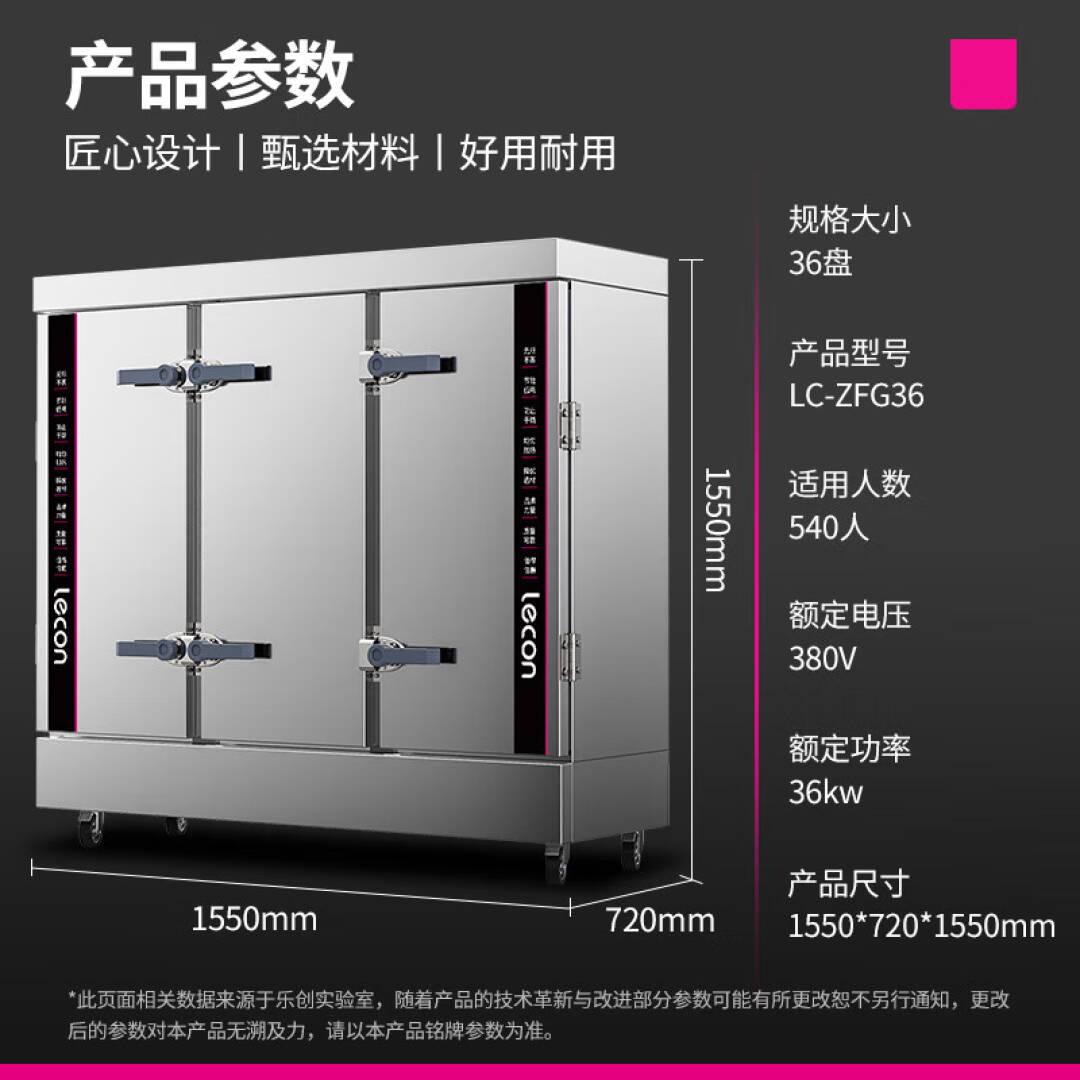乐创(lecon)蒸饭柜商用 三门电热蒸箱蒸饭车学校食堂餐饮大容量蒸柜蒸包炉蒸饭箱 标准款36盘380v LC-ZFG36