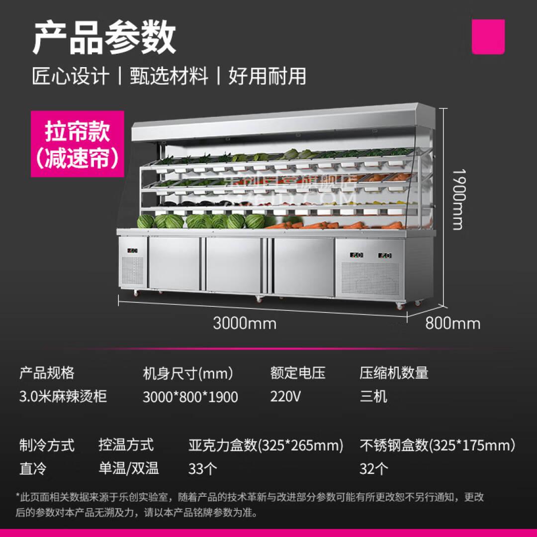 乐创(lecon)麻辣烫展示柜冰柜串串点菜柜冷藏柜保鲜柜冷冻柜冒菜展示柜拉帘款3.0米LC-MLT