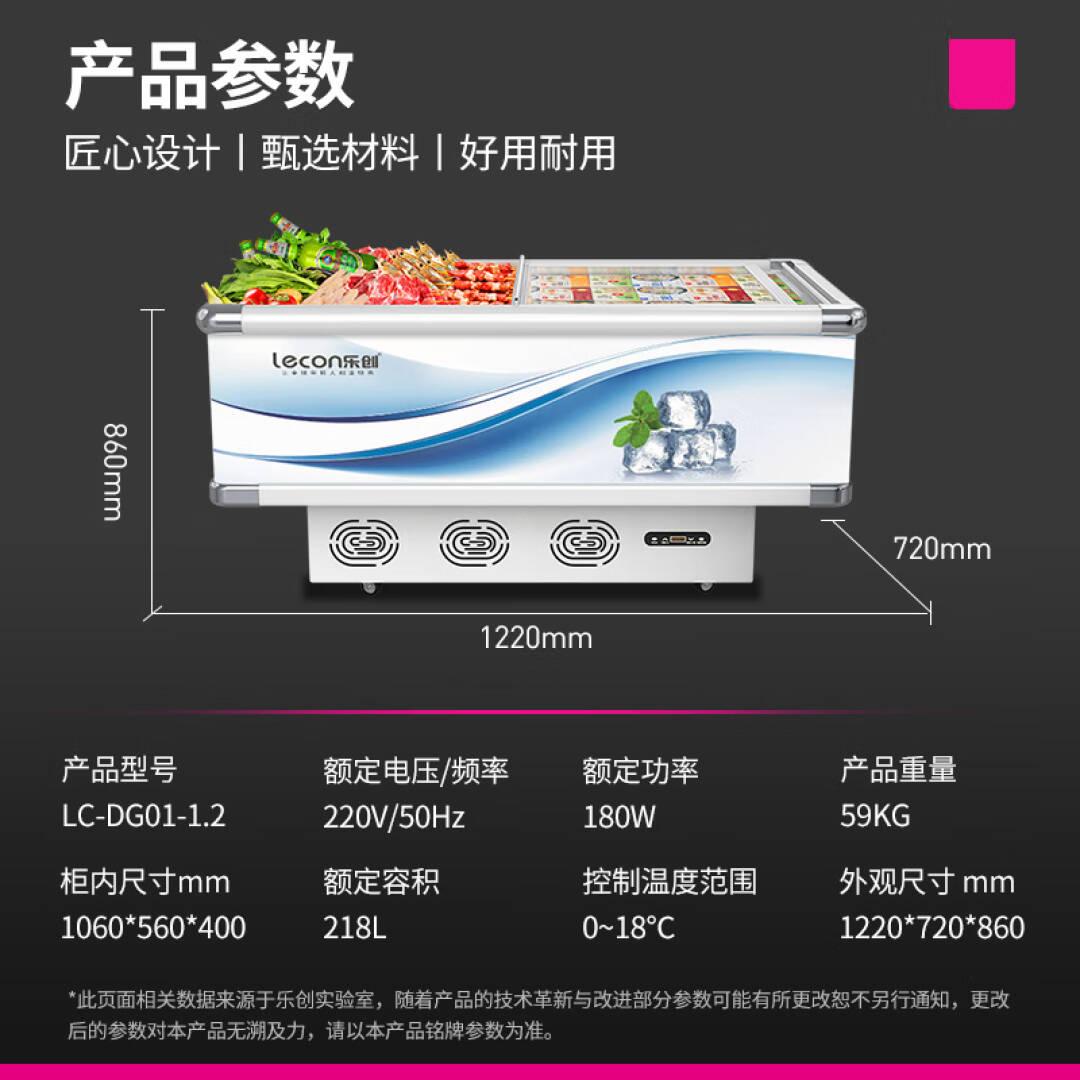 乐创(lecon)平岛柜卧式冰柜冷藏保鲜冷冻点菜柜商用展示柜烧烤配菜柜卧式冷柜海鲜超市(1.2米)LC-DG01-1.2